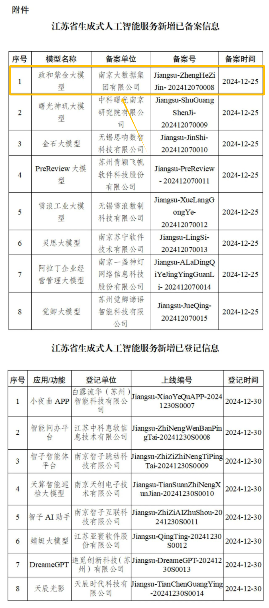 附件:江蘇省生成式人工智能服務新增已備案(登記)信息