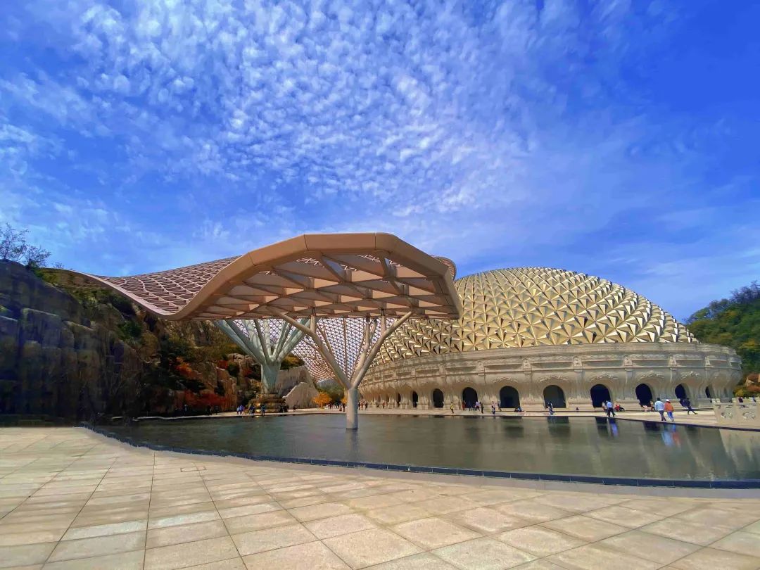 說到南京,大家通常會想到夫子廟,但民間也有“春牛首秋棲霞”的古話。作為南京網紅地標性建筑的牛首山有著“大榴蓮”之稱,是金陵四大名勝之一,因山頂東西雙峰形似牛頭雙角而得名。其中最出名的打卡點就是佛頂宮,地上3層地下6層,里面更是精美絕倫,每下一層樓都有著時空穿越的感覺,很適合假期帶家人一起拍照游玩。